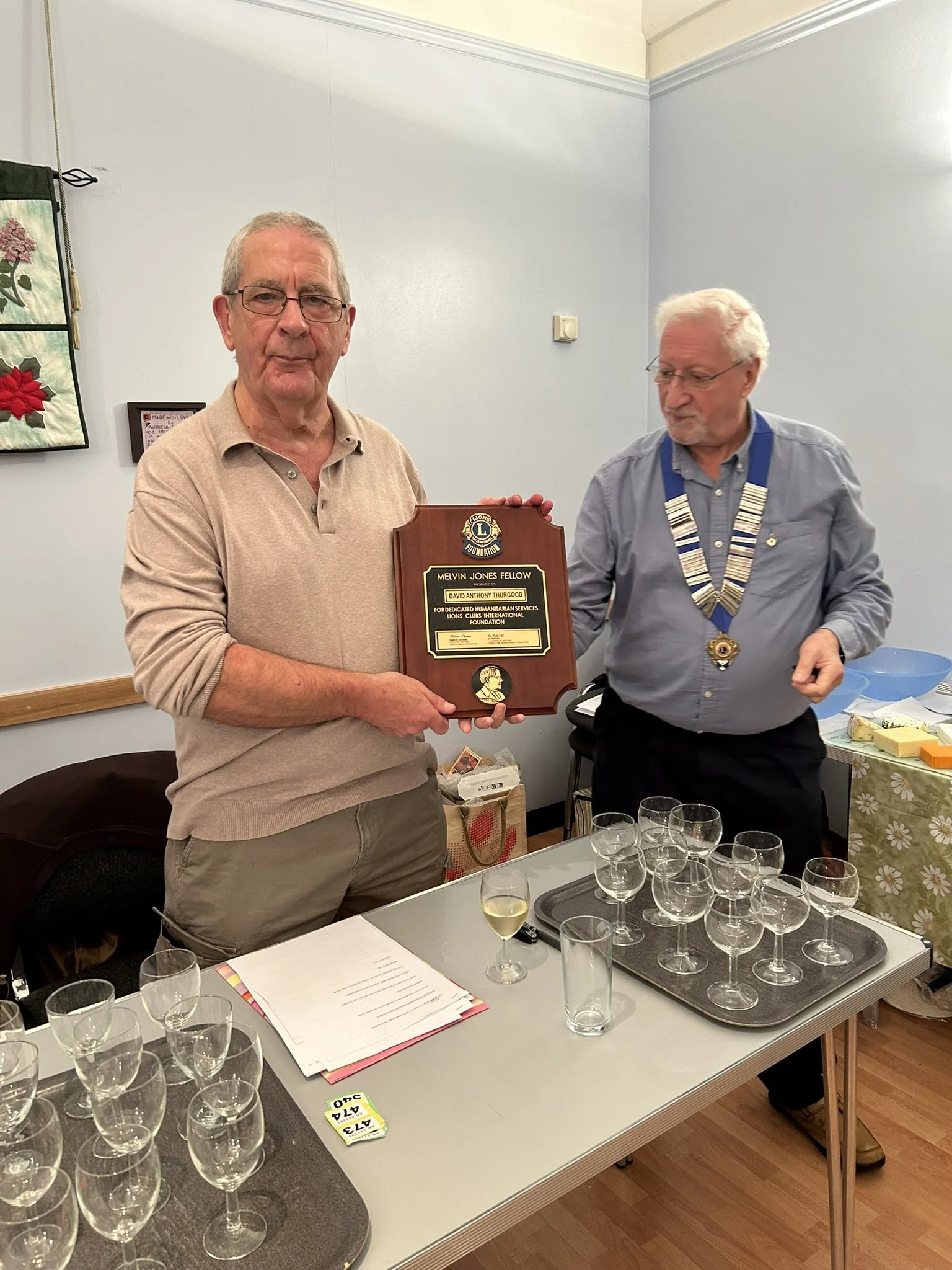 Lion Colin Gilchrist receiving his Melvin Jones Fellowship award